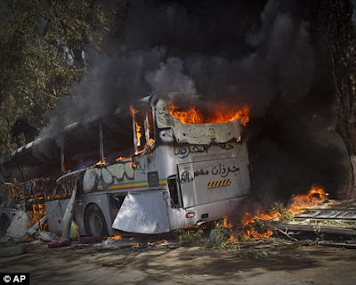 The charred remains of cars belonging to dozens of Gaddafi loyalists litter the sides of roads on the outskirts of Benghazi